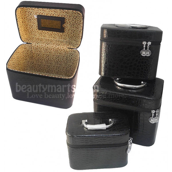 Hit the road with all your makeup must-haves with this trio of sleek cosmetic cases from . Styled in soft faux leather with a secure zip-top, each keeps beauty treats organized and in place. Faux metallic leather. Top zip closure. Clear front and back on large case.